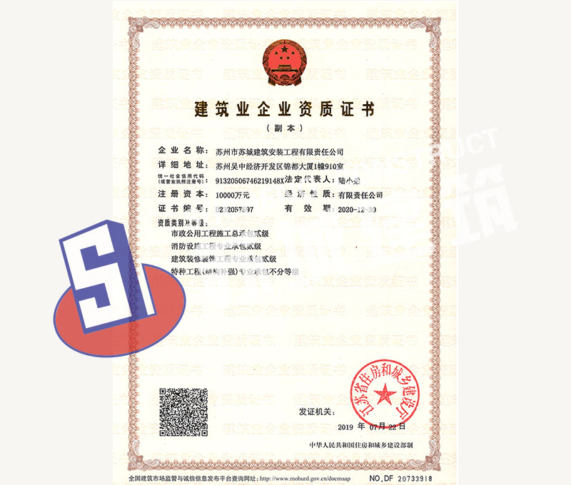 蘇州市蘇城建筑安裝工程有限責(zé)任公司,擁有主項(xiàng)建筑工程施工總承包一級資質(zhì),增項(xiàng)市政公用工程施工總承包二級資質(zhì)和建筑裝修